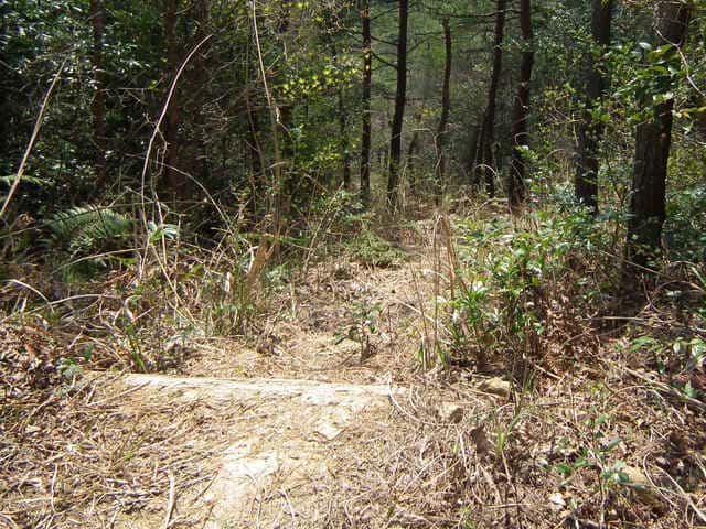 大平山から馬鞍山への登山道 一挙に落ち込んでいる。 |