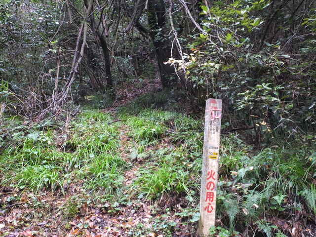 ジンジソウはなんとか花茎が残り果実をつけたものが2本ほどありました。朝のうち晴れていた空も、午後からは厚い雲に覆われてしまいました。足場の悪いうえに日のあたらない山の中で、小さな果実はとてもうまく写ってくれませんが、果実が残っていたという雰囲気だけは写ったようです。 林道島村線の道路脇に鉄塔巡視路の登り口の標識を見つけました。近くの沢には小さな滝がありました。登り口から山の稜線までは直登で急な斜面を上がるので、滑り落ちそうなうえに息も切れてしまいます。一度谷へ下りてまた上がった尾根には割りと広い道がありました。3本目の鉄塔からは急な斜面を下るようになり、道路沿いの民家の横に出てきました。ここから林道島村線を最初の登り口まで帰ることになりますが、合わせて1時間ほどの山歩きでした。 |