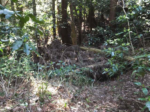 | 14:07 倒木の脇を進む。 |