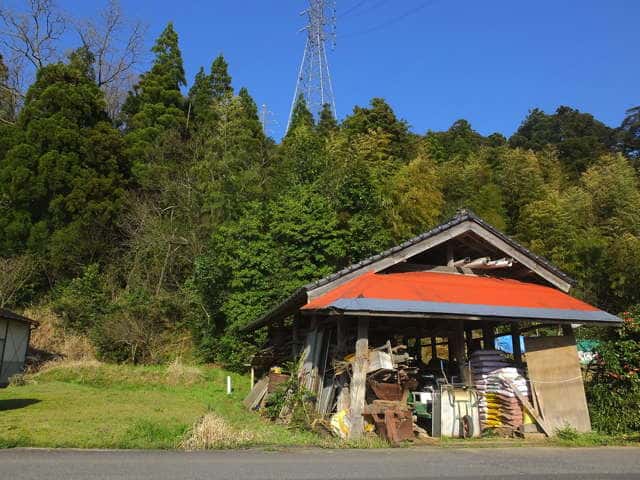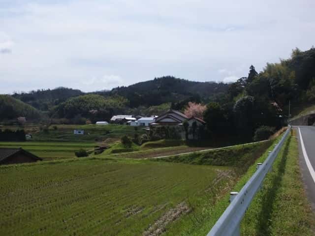 | 東出雲町竹花から見た宝満山。 | 河原神社。 | 15:38 田んぼの脇から山へ入る。 |
