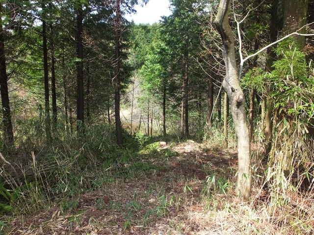 四等三角点(林 159.34m) | 13:28 三角点の向こうに踏み跡がある。 |