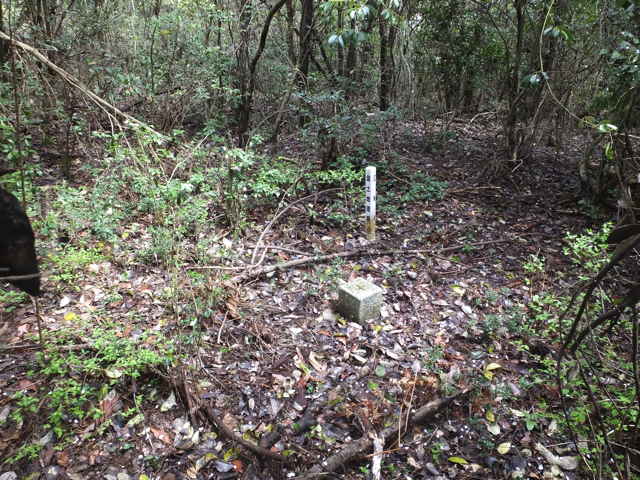 16:09 ブッシュの中に三角点があった。 |