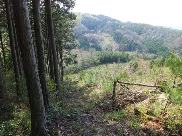 13:35 植林と自然林の間を下がる。 |