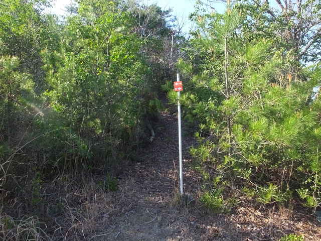 三等三角点(古城山 57.28m) | 17:18 尾根の先へ踏み跡をたどるが、 不明のため引き返す。 |