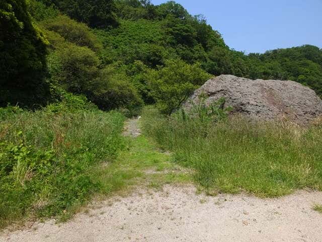 | 大きな岩の脇を入る。 | 13:00 少し進むと左手に畑への道がある。 |