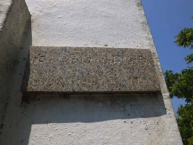 | 七類港釣鉾山燈台と銘板がある。 | 燈台の手前の草むらに三角点があった。 | 四等三角点(114.9m)。 |