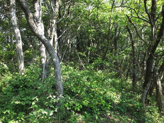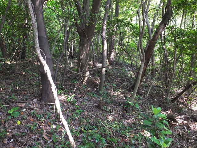 15:18 頂上(203m)付近も木々に覆われ何も見えない。 |