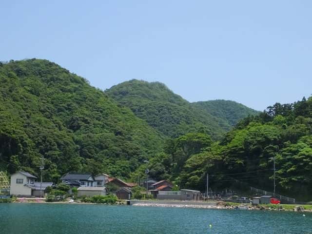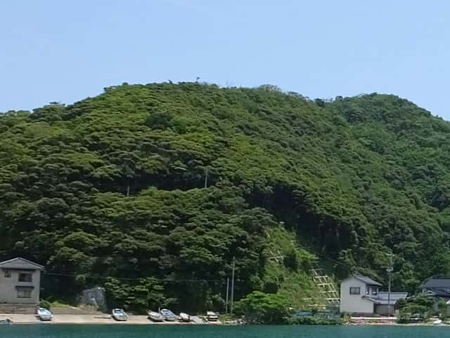 | 雲津港から見た寺尾山。 | 12:11 家の間の小径を山へ向かって入る。 |