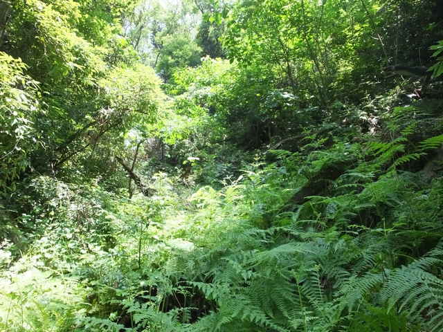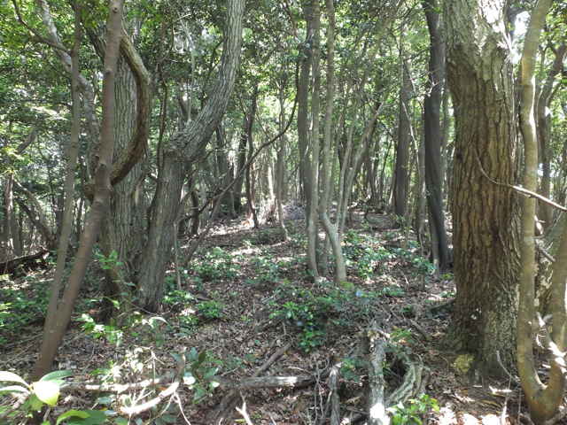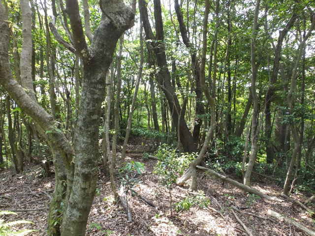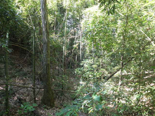 14:42 竹藪を海岸方面へ下がってしまい、 西の谷を尾根へ上がる。 |