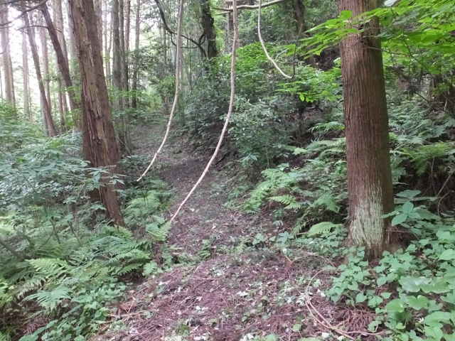 14:11 道は右へ曲がるが、林内へ直進する。 |