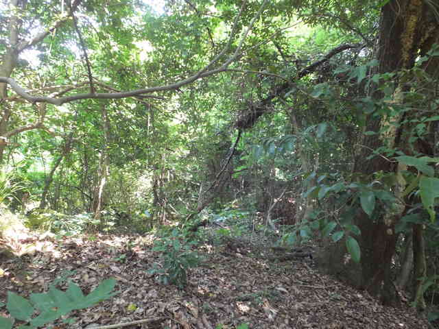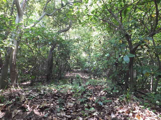 藪を抜けると、樹林内に小径がある |