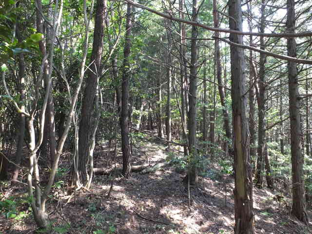 道路脇から上がった所から尾根が下っている |