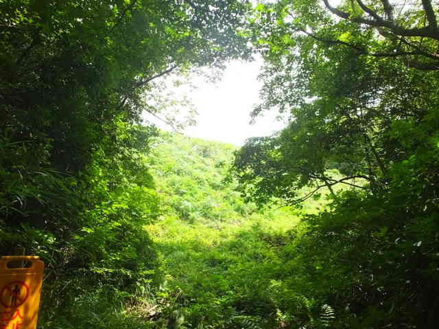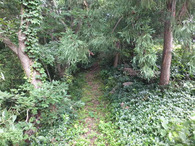 | 14:52 道路脇から谷沿いの草むらに入る。 |