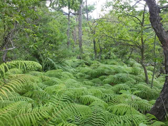 12:47 | 13:02 頂上に続く尾根もシダが密生する。 |