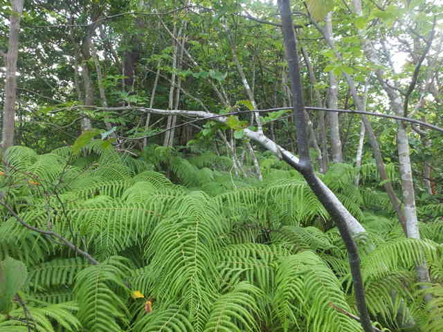 15:36 小ピークへ上がるとシダが密生してくる。 |