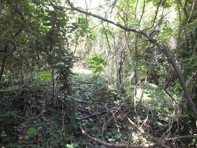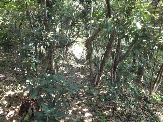 | 13:48 海岸沿いの藪の切れ間から斜面を上がる。 |