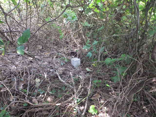 | 今日は、先日(7月13日)に探しても見つからなかった四等三角点(恵曇 95.68m)や、藪の中を進めず諦めた四等三角点(片句 70.76m)を再度確かめに出かけました。 道路脇の植え込みに大きな果実がたくさんついているので、なんだろうかと思いました。調べてみるとボケの果実のようで、初めてのことでした。砂浜を歩いてみましたが、今年はグンバイヒルガオは1株だけ見つかりました。 四等三角点(恵曇 95.68m)は、先日藪を切り払って頂上まで上がっているので、比較的楽に上がることができましたが、やはり頂上部に三角点が見つかりません。小木や草を切り払い、枯れ落ち葉をかき分けるようにして、範囲を広げながら何度も探しました。40分ほど探し、諦めようと木の根元の落ち葉をかき分けた時に、土中に埋もれるように三角点の柱石が出てきました。白い標示杭がなく、普通の三角点よりも地上部の柱石の高さがないため、なかなか見つからなかったと思われます。一時は誰かが掘り起こしたのかとも疑念が湧きましたが、探せばあるのだと自分に言い聞かせました。 四等三角点(片句 70.76m)は、先日、道路脇からは藪がひどくて上がれなかったので、北側の海岸部から上がれる場所はないかと周ってみました。海岸へ下りる途中に、山際の藪が途切れているところがあり、奥の斜面も木が疎らなようなので、ここから入ってみることにしました。斜面を上がると、斜面を横切って獣道か踏み跡のようなものがあり、尾根筋に向かっていました。尾根は昔には人が歩いたこともあったような感じもありますが、ほとんど藪になっており、茨や枝を切り払いながら進まなければいけませんでした。頂上は密生した藪になっており、回り込んで裏から見ると、藪の中に三角点が見えました。ここの三角点は藪の中にあっても地上部の高さがあったので、すぐに確認できました。 今日はまだ他にも確認しようと思っていましたが、あまりにも熱いことと2箇所に時間がかかったこともあり、ここで止めることにしました。 |