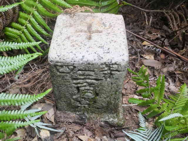 | 道路脇の草むらに白い標示杭が見える。 | コンクリート枡に埋められている。 | |