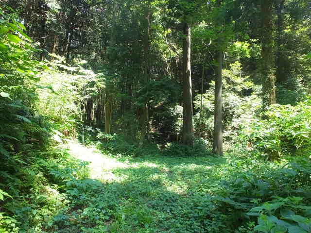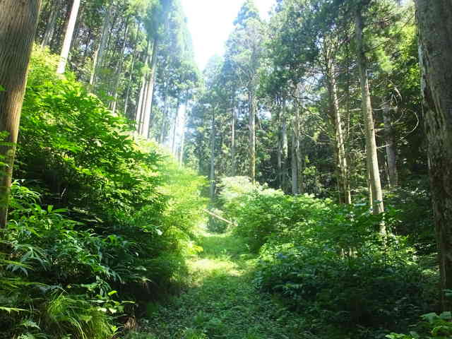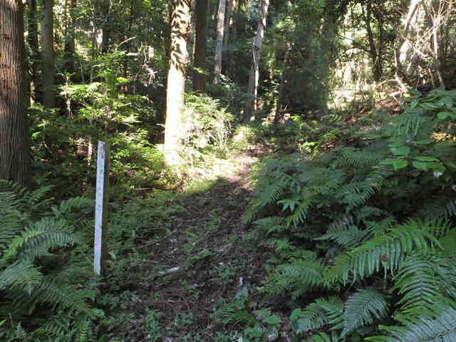 | 十二所神社の前から山へ入る。 | 11:05 林内の作業道を進む。 |