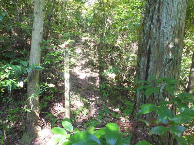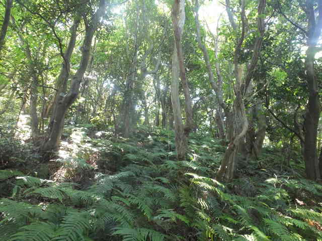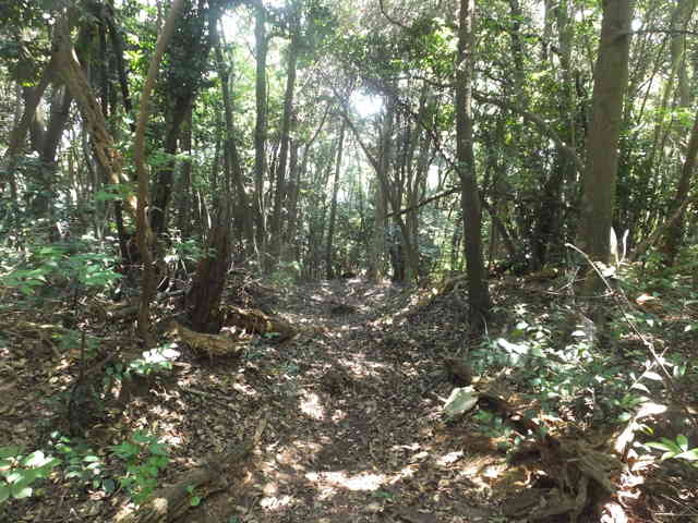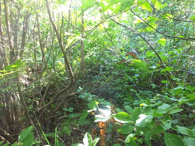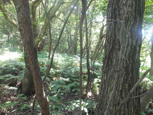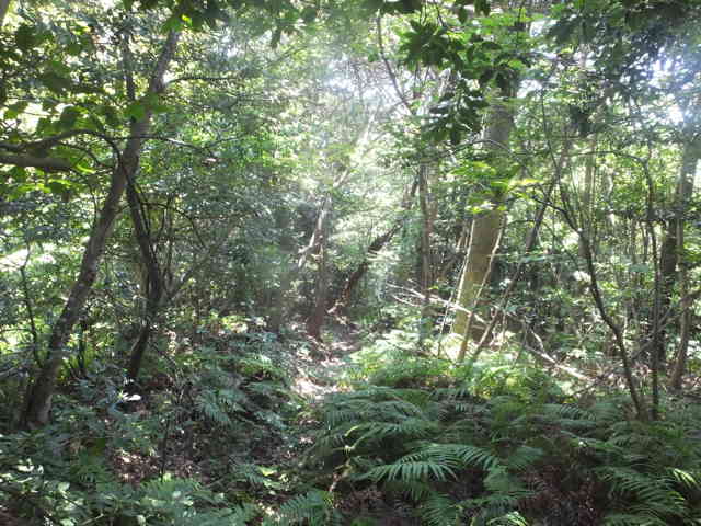 | 四等三角点(和田多鼻)は上がるのが危険で諦めた。 | 山も急斜面で藪となっている。 |