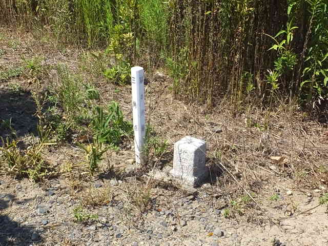 | 今日は、東津田や大海崎の三角点を見てから、八束町の三角点を見ようと出かけました。 東津田町の四等三角点(栂前 2.67m)は、栂前橋のたもとからススキの茂った草地を進んだところにあります。背の高い草地に入ると、足下には古い踏み跡があるようです。10mほど進むとススキの陰に保護石に囲まれた三角点がありました。 三等三角点(大海崎 122.36m)は、「点の記」では県道松江福富本庄線の大海崎鼻に近い所から上がるルートになっていますが、藪や急傾斜が続いてルートがはっきりしないので、十二所神社から山へ入って谷筋からピークへ向かうことにしました。作業道を入って分岐を右へ、右へと進んで行くと、20分ほどで作業道は終点となり、右手に急斜面の山が迫ります。この斜面の上が三角点のあるピークになるようなので、急斜面に向かうことにします。藪はなく、適当に掴まることができる木があるので、案外楽に上がることができました。尾根に上がると、左へ踏み跡があり、5分ほどで平坦部へ到着します。平坦部へは右からも踏み跡が奥へ向かって続いていて、奥には小さな社が祀られていました。先ほどの右からの踏み跡は、参道のように思われます。社の奥には開けた場所があり、その奥に三角点がありました。 帰りは、先ほどの参道と思われる踏み跡を下がってみることにしました。きれいな小径が続いており、15分ほどで大海崎東トンネルを越えた所へ下りてきました。このルートが一般的なルートと思われます。 上宇部尾町の四等三角点(上宇部尾西)は、水田の脇にあるはずなのですが、笹の上に葛が覆いかぶさって茂り藪となっているので、踏み込むこともできず諦めました。 四等三角点(上宇部尾)のある山は、以前は東屋があったり展望台のある場所だったはずですが、今では道も背の高い笹が生い茂り、入れる状況ではありませんでした。 八束町大根島の四等三角点(入江 1.69m)は、道路から畑の中の細い道へ入った畑の隅にありました。 四等三角点(弁天島 4.09m)は、羽入港の弁天島の公園の中にあり、園路を奥へ進んだところにあるベンチの後の松の木の下にありました。 四等三角点(江島 10.19m)は、道路脇の墓地の中へ入り、奥へ進んだ荒れ地にありました。 四等三角点(和田多鼻)は、江島から堤防道路を下宇部尾へ渡った道路脇にありますが、開削された山の法面が急なモルタル吹付けの崖になっており危険なため、また樹林内も急な斜面の藪になっているので今回は見送りました。 四等三角点(下宇部尾 132.66m)は、万原地区の細い道を峠まで上がり、法面上にあるお地蔵様の前から鉄塔巡視路をたどります。アップダウンを繰り返し、鉄塔No39〜鉄塔No.41まで巡視路を30分ほど歩くと、この三つ目の鉄塔の近くに三角点があるはずです。鉄塔の奥がピークのようなので、巡視路を数m進みながら、右側の藪の中を見ると白い標示杭が見えました。 |