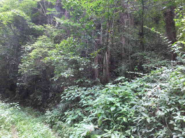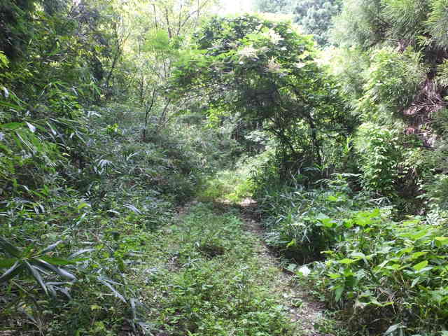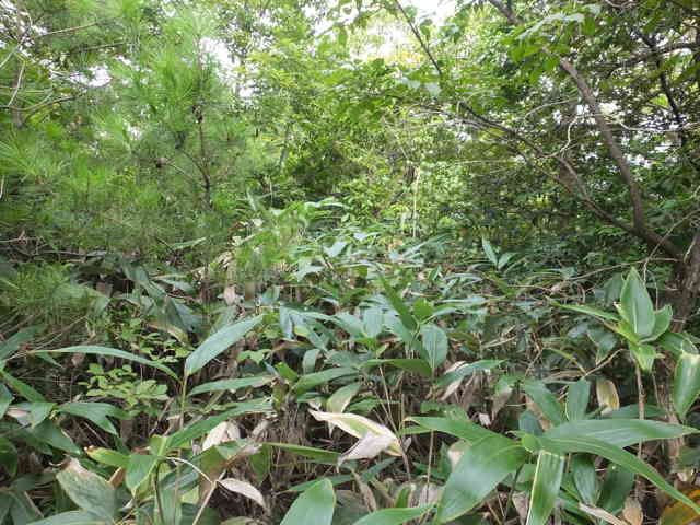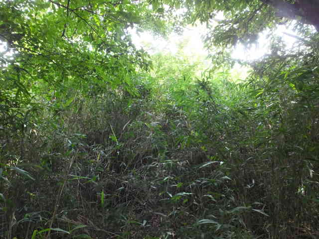 | 13:27 背の高い笹藪の中へ分け入る。 |