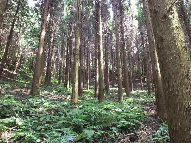 | 今日は、2016年3月26日に八雲町の空山に登って笹薮のため三角点が確認できていないので、再度挑戦することにしました。 八雲町へ向かう途中で玉湯の放棄水田の湿地に寄ってみました。草むらの中にアヤメ科らしい果実をつけたものがあり、キショウブと思われます。ただ、この場所でまだキショウブの花が咲いているのを見たことがないので、また花を見て確認しようと思います。草むらの中にはミズトンボがまだ無事に咲いており、またイヌホタルイではなくホタルイがありました。 東忌部の山道ではシンミズヒキを写しましたが、暗いためうまく写りません。ヤマジノホトトギスは図鑑などでは花が葉腋に1〜3個つくとなっていますが、今までも5個ついたものを見ており、違う種類かとも思ったりしていました。今回見たものには6個の蕾がついており、ヤマジノホトトギスの変異の範疇と思われます。 二等三角点(矢筈越 410.6m)のある空山へは、東忌部町熊山から大川端に向かう市道の脇から山へ向かう作業道があり、溜池の脇を通って谷の奥へ入り、植林地の斜面を上っていくと、頂上付近へ上がります。植林地を越えた八雲町側は牛の放牧地があり、電気柵が張られています。電気柵に沿って上がって行くと、頂上部付近の植林地内に大きな穴がありました。ここらへんだろうとGPSで確認すると、三角点は電気柵の向こうにあり、電気柵に電流が流れているかどうか確認のしようもないので、地面との間に余裕が有る所からくぐり抜けました。電気柵の向こうには背の高く太い笹が密生していますが、最近電気柵が新しくされ、電気柵に沿っては笹が刈られていました。笹薮の中に入れる場所がないかと探すと、牛の歩いた跡なのか、踏み跡がある場所がありました。なんとか背の高い笹薮をくぐり抜けると、背の低い笹の生える開けた場所に出ました。歩き回っても笹の葉に隠れた三角点はなかなか見つけられませんでした。「点の記」には、ネムノキとクヌギの木の絵がありますが、詳細な位置が特定できません。GPSを確認しながらも、見つからないので、茨の藪の中だろうかなどと考えても、茨の藪を切り開く気にはなりませんでした。GPSにも誤差があるので、周囲を何度も歩き回り、最後にもう一度地形図の三角点の中心位置まで戻って、足下を見ると笹の葉の陰に四角い石柱が見えました。二等三角点(矢筈越 410.6m)でした。笹原の中の小さなクヌギの木の近くの笹の中に隠れていました。白い標示杭がないので探すのに苦労しましたが、3度目にしてやっと確認することができました。 四等三角点(金田奥 229.93m)は、市道岩室平原線から携帯アンテナの管理道を入ったところということです。管理道は最近人が通っていないのか、笹に覆われて階段が見えない状態でした。アンテナからも笹に覆われて、踏み跡もない藪の状態ででした。距離もないことだからと、笹をかき分けて尾根を進んで行くと、ピークに白い標示杭が見えました。白い標示杭があれば、探すのも楽になります。 時間もなくなったので、最後に須谷の奥にある四等三角点(深山 450.04m)へのルートを確認しておくことにしました。「点の記」では須谷から林道を入ることになっていますが、この林道は関係者以外立ち入り禁止になっているので、手前の要害山の向かい側の谷から入ってみようと思います。谷を入ってみると、半分くらいのところで作業道が草に埋もれてしまい、奥まで行けそうにありませんでした。手前の小さな谷から山の斜面を上がれそうなところがあるので、ここから尾根へ向かうことにしようと思います。長い尾根筋を上がることになりますが、笹薮がなければなんとかなると思われます。時期をみて挑戦しようと思います。 |