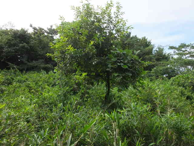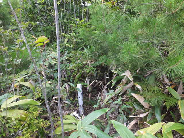 14:01 笹原の中に小さなクヌギの木が1本ある。 |