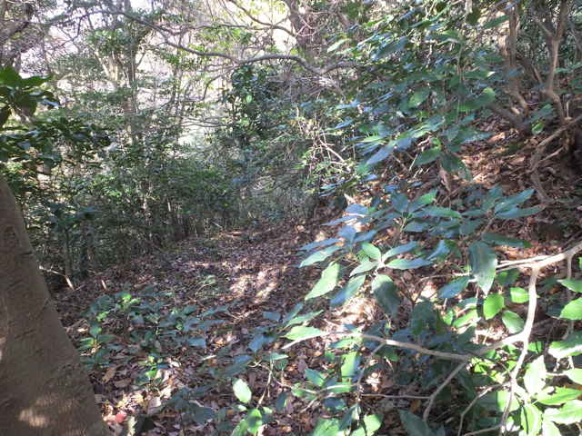 | 15:00 参道ルートから左へ小径がある。 | 15:00 広い道が下がっている。 | 15:03 だんだん径が細くなってくる。 |