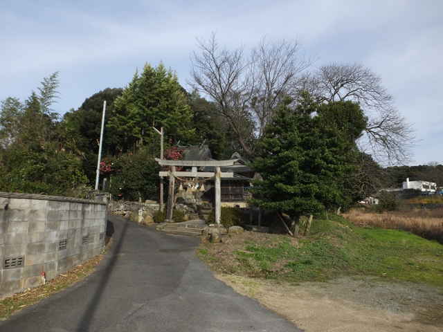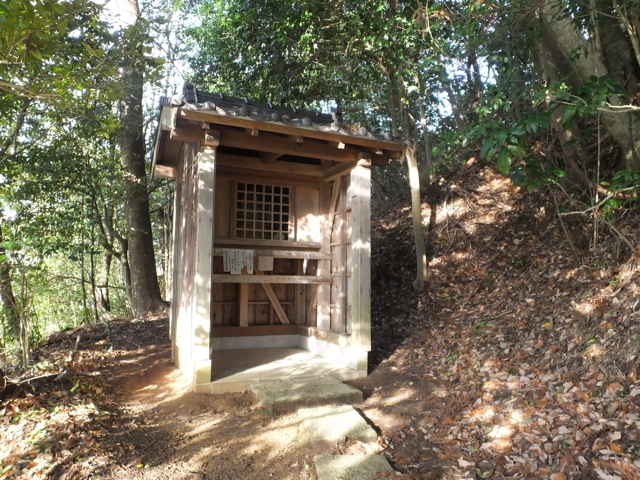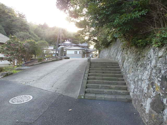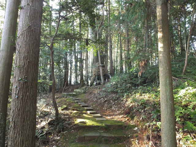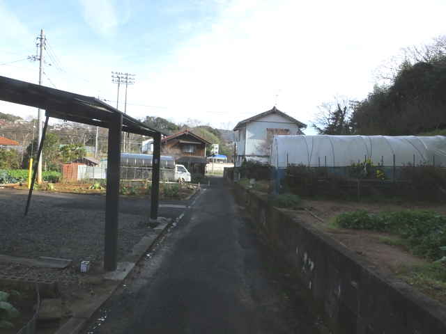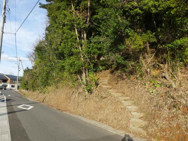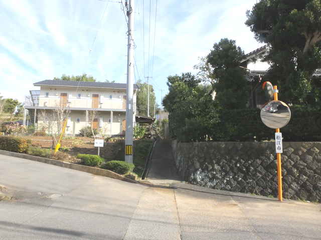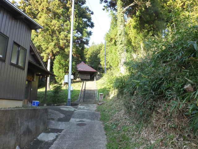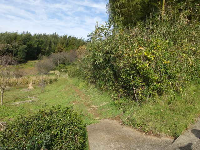 | 民家の間の小路を入る。 | 畑の奥に石段がある。 | |