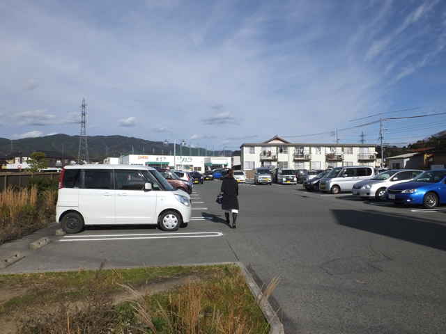 | スーパーマーケットの駐車場を横切る。 | 旧国道へ出て笠無橋を渡り左折する。 | 下東川津町 橋から100m進み、右折する。 |