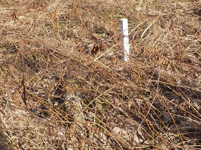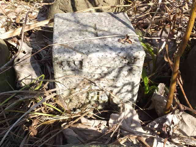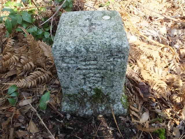 | トンネル上部の草むらの中に標柱が見える。 | 4個の保護石に囲まれている。 | |