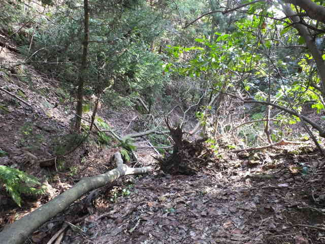 | 今日は、久しぶりに天気も落ち着いて晴れるようなので、西持田町の三角点(西持田)と近くの三角点を見ようと思います。 三角点(上乃木)は県道21号線の桧山西トンネルの上乃木側の上部にあります。荒れ地になって草薮になっていますが、先日の雪で枯れ草が倒れ白い標識が見やすくなったようです。4個の保護石に囲まれた四等三角点(上乃木 21.77m)がありました。 三角点(西持田)は、西持田町の竹崎団地の奥の小さな山の頂上にあるようです。山の麓の住宅の前にある駐車場の横から畑に入り、奥の竹林へと向かいました。竹林を奥に入り、踏み跡などはありませんが、適当に左側の斜面を上がりました。すぐに尾根に上がり、反対側は植林地になっています。尾根をしばらく上がると、右手が高くなっているので、高い方へと斜面を上がりました。最近は人が入らないようで、山は荒れた感じになっており、枝を切り払わなければ進めなくなっています。頂上だろうと思われるところをだいぶ探しましたが、三角点が見つからず、今回もまた要再確認になるのかなと思われました。GPSを確認すると、三角点はもう少し北西方向にあるようです。頂上部は上がった場所から平坦地が北西に続いており、藪の中をしばらく探すと、白い標柱が見えました。四等三角点(西持田 54.64m)でした。 澄水山の中腹にある大滝には、鉄塔巡視路から行けるという情報を頼りに何度も探していますが、最後のところで竹藪に阻まれて確認できていません。今回再度、竹藪の様子や周辺の様子を見ようと出かけました。林道澄水山線を上がり、右手に鉄塔の巡視路標識から山へ入ります。最初の鉄塔を過ぎ山道を上がって行くと、三叉路に出会います。左手へ直進するように行くと、中国自然歩道の持田別れ(東持田と矢印の標識がある場所)に上がれます。三叉路を180度折り返すように右へ行くと、谷へ下がって行きます。橋を渡り、更に下がっていくと、次の鉄塔が見えてきます。この鉄塔の手前から左手斜面を下っていきますが、巡視路はだんだん細くなり、足場が悪く滑り落ちそうなところもあります。次の谷が大滝のある谷になります。谷の中は大きな岩が塞ぎ、通ることはできないようです。谷沿いは竹が密生し、何重にも倒れ込んで、行く手を阻んでいます。一度は竹を切り払いながら進んでみましたが、前方にはさらに竹が倒れ込んでいるので、ここで諦めました。地図で確認すると、大滝まではあと20m位のようです。次回は鋸を持って来なければいけないでしょう。谷沿いは諦め、斜面を回り込んで行けないかと、急斜面を上がってみましたが、滝はどんどん下になってしまい、下へは下りられそうにないので、こちらも諦めました。大滝はまだまだ謎の滝です。 澄水山線を上がる時に白滝の周囲が整備されきれいになっていたので、帰りに寄ってみました。以前は藪になっていて近寄れませんでしたが、藪が切り払われ、簡単に川まで下りることができるようになりました。 |
