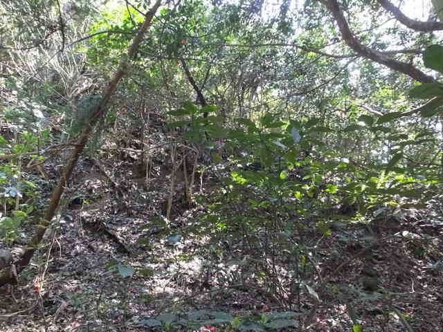 11:59 荒れ地から林内の谷へ入る。 |