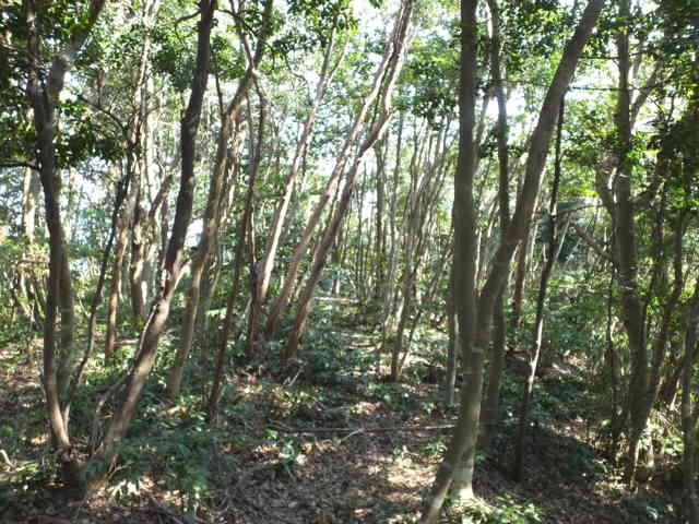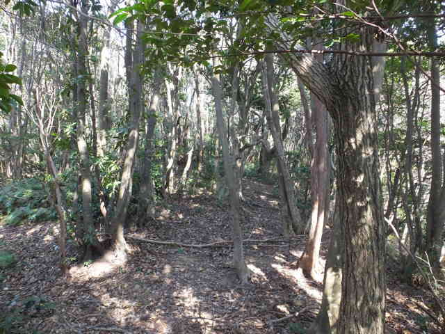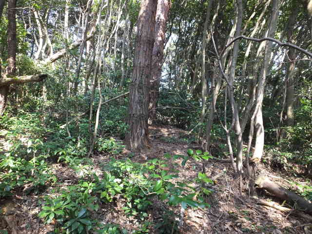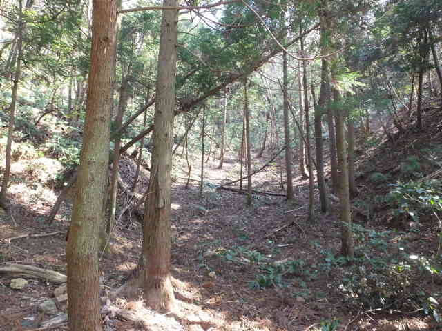 | 14:58 標高235m付近、小さな平場から右の尾根へ進む。 |