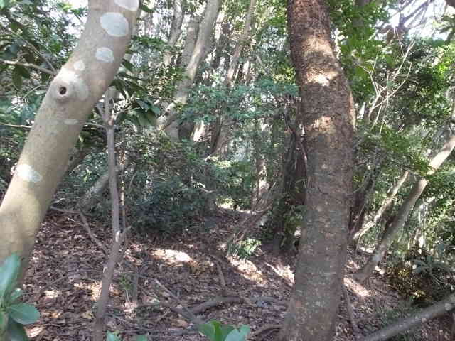 | 今日は、美保関町の東端から3箇所の三角点を確認することにしました。東端の三角点は美保関灯台の近くにあり、2017年10月31日に一度探していますが、草むらの中で見つけられず、また小諸喰も確認できていませんでした。 四等三角点(美保之碕 71.14m)は、灯台ビュッフェ近くの遊歩道脇のフェンスの杭の脇にあるということで、覗き込むとすぐに三角点が見えました。しかし草地なので草が伸びるとわかりにくいかもしれません。 四等三角点(小諸喰 102.45m)は林道美保関線の脇から山へ入ると、釣り人が使っていると思われる踏み跡があります。急な尾根道を上がると、傾斜も緩やかになり、踏み跡がカーブする右脇に三角点が見えました。先日もここら辺りを探していたと思いますが、ススキに隠れていたのかもしれません。 三等三角点(大床峰 248.11m)は市道福浦諸喰線の峠付近から尾根をたどった所にあります。道路脇の斜面には踏み跡らしきものが山へ入っています。林内に入ると、谷は歩きやすいように見えましたが、すぐに藪の急斜面になりそうなので、左の斜面を尾根筋へ向かうことにしました。斜面は急で、シダが多いですが、木につかまりながら進むと、すぐに尾根筋へ上がりました。尾根筋もしばらくはシダが多く、踏み跡は見えませんが、上部では踏み跡がはっきりしてきました。何度か小ピークへ上がり、最後に小さな平場へ上がった所から、右へ伸びる尾根を進むと、踏み跡の中央に三角点が見えました。最初の尾根道への取り付きが違うのかもしれませんが、尾根に上がってしまうと歩きやすい踏み跡が続き、山歩きが楽しめる山です。ただ眺望は全くありません。 |