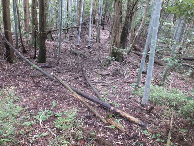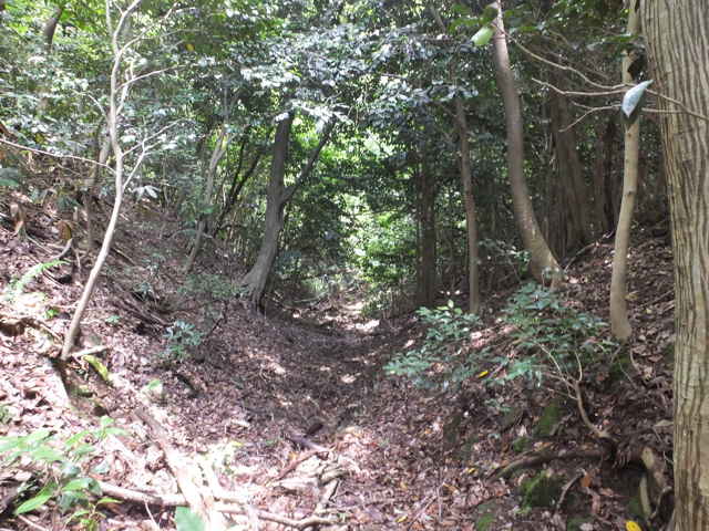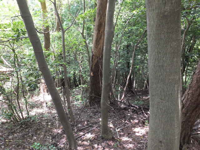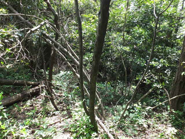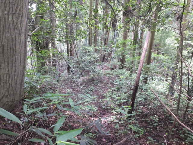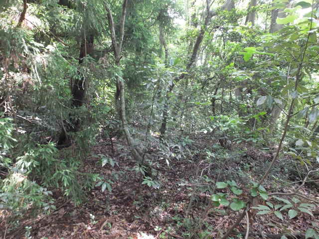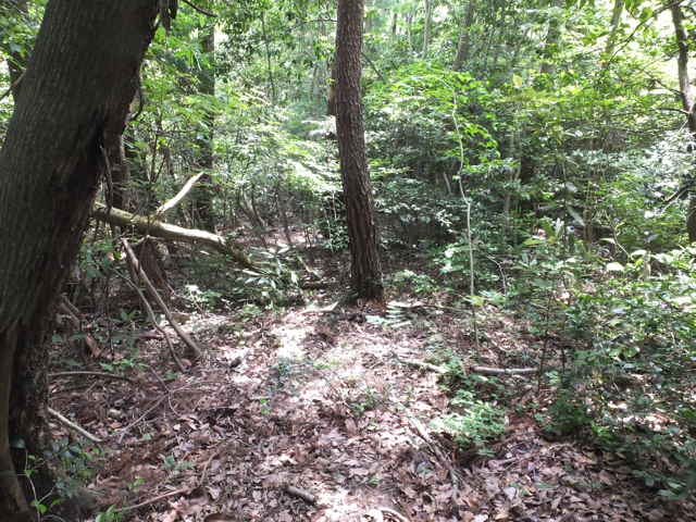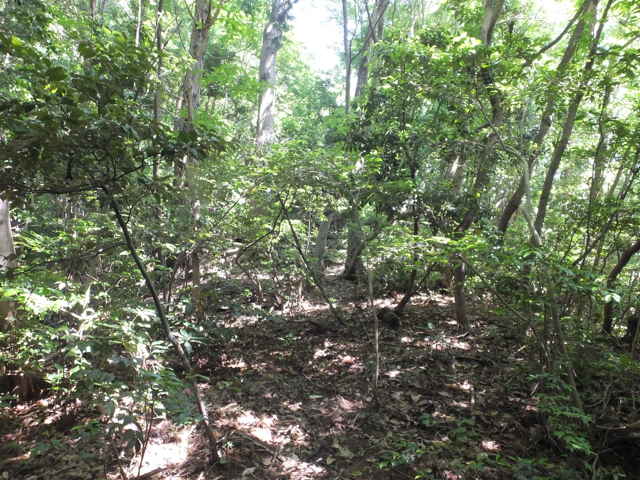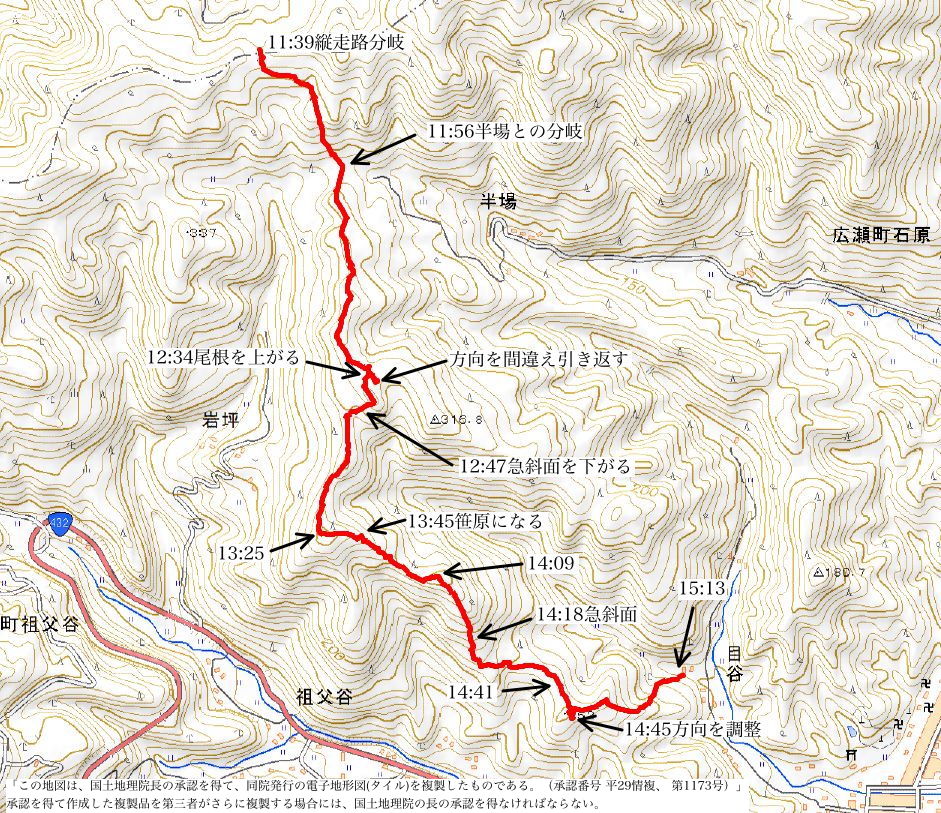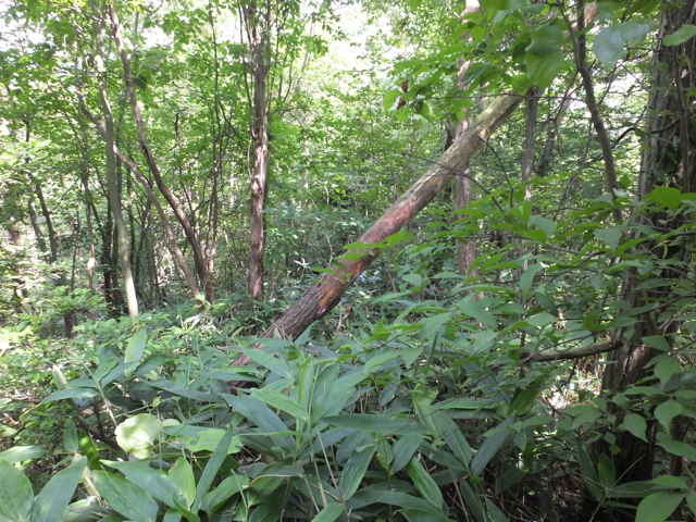 | 今日は、京羅木山の山口谷コースから峠を越えて半場コースへ入り、尾根沿いに広瀬町目谷へ下ってみようと思います。 先日道路脇でハナハマセンブリを確認しようと思いましたが、1本も見つけられず、なくなってしまったかと思いましたが、数は少なくなって小さな個体でしたが、まだ今年も残っていました。オオマツヨイグサは、たまに道路脇で見かけますが、まだ成熟した果実を写していません。道路脇なので夏場になり花が終わると、草刈りにあってしまうのでしょう。樹皮や複葉の様子からキハダと思っている高木の、内樹皮を確認してみました。樹皮の内側は鮮黄色で、キハダで間違いないようです。 半場コースの笹原の斜面を下ったところから、コースを外れ尾根沿いを直進します。この尾根沿いのルートは四等三角点(岩坪)へ行ったときのルートなので、分岐点までは以前のテープがはっきり残っていました。三角点へは東の尾根に進みますが、今日のルートは南へ尾根を分岐することになります。分岐するところを過ぎていたようで、尾根の分岐が不明で、一時谷へ向かってしまい、尾根になるようなところまで、少し引き返しました。 この尾根のルートはあまり人が通ったこともないようで、踏み跡といえるものが見当たりません。幸いにこの尾根には茨が少ないので、伸びた枝を切り払いながら進むだけです。 尾根が東へ曲がったあたりからは、しばらく笹が多くなり、足元が見えないので、隠れた倒木や段差があったりして、歩きづらくなります。また尾根が何度も曲がるので、GPSで何度も位置を確認しないと間違った尾根を下ってしまいます。最後は竹藪の急斜面を下りると人家脇の道路に出てきました。 |