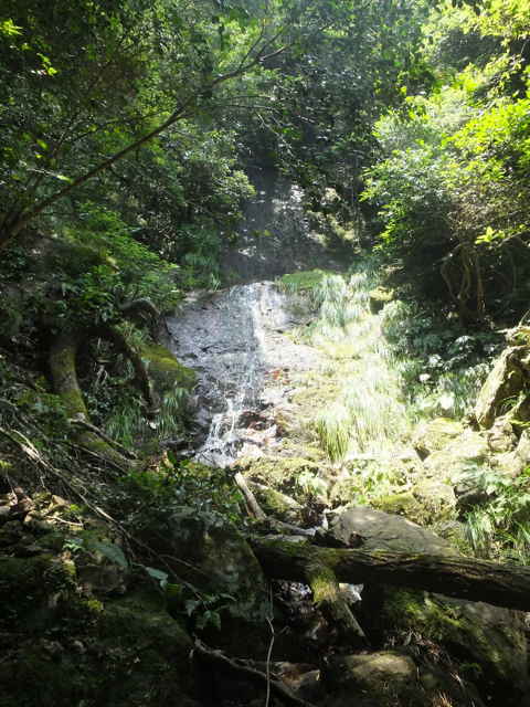 12:11 やや大きな滝(中滝)が前方を塞いでいる。 |