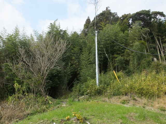 | 12:13 電柱脇の竹藪から下りてきた。 | 紐解神社 |