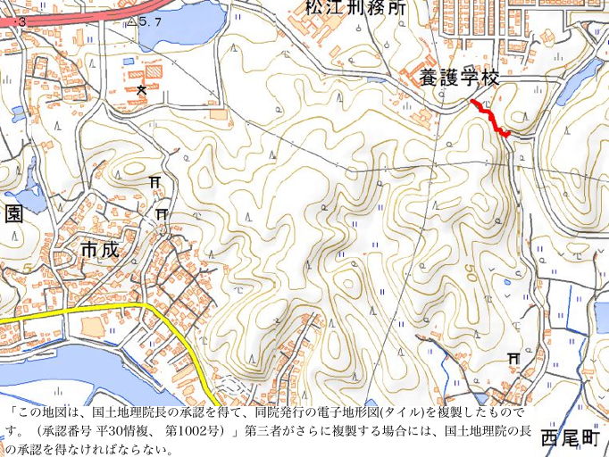 | 駐車場の奥から出てきた。 | 旧版地形図 |