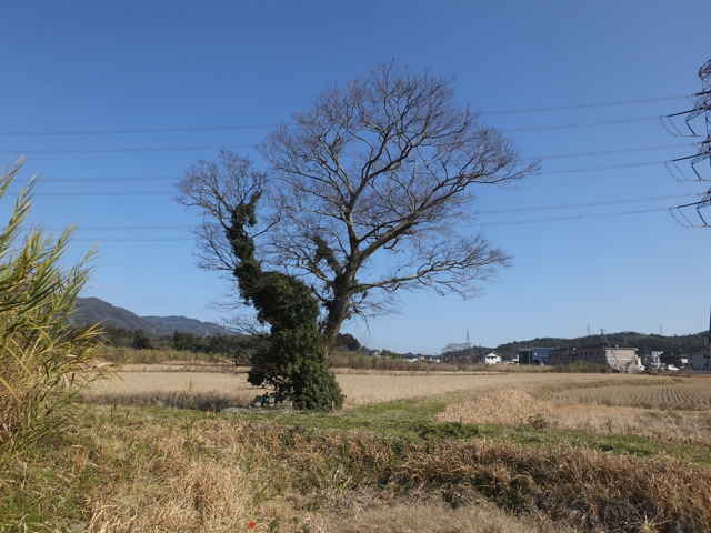 | 下東川津町 | 田の脇の径が左へカーブする。 | カーブの先に大きな樹がある。 |