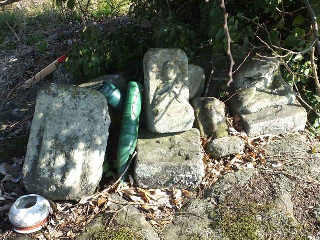 | 下東川津町納佐 | 道路脇の壊れた石地蔵 | 田畑の中の径を進む。 |