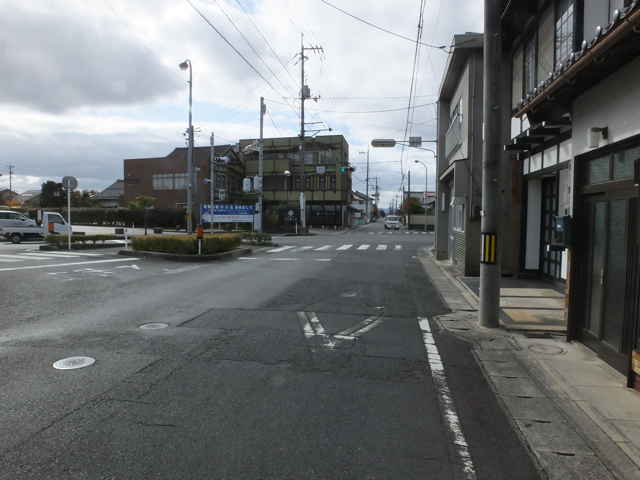 往還へ帰り、広い市道と交差する。 |