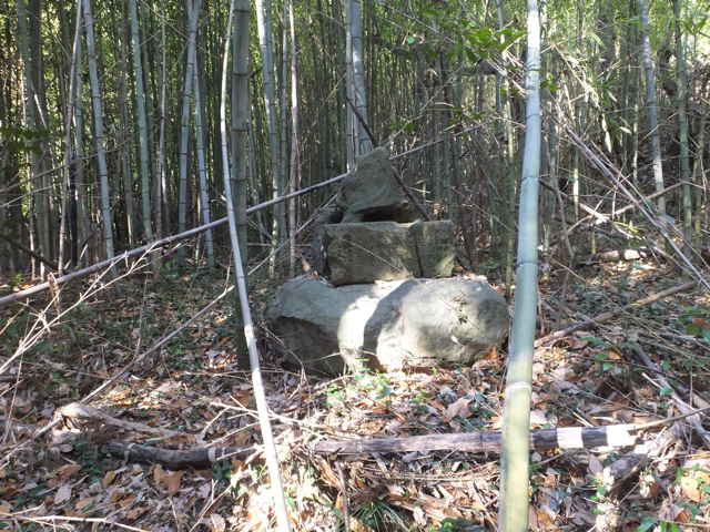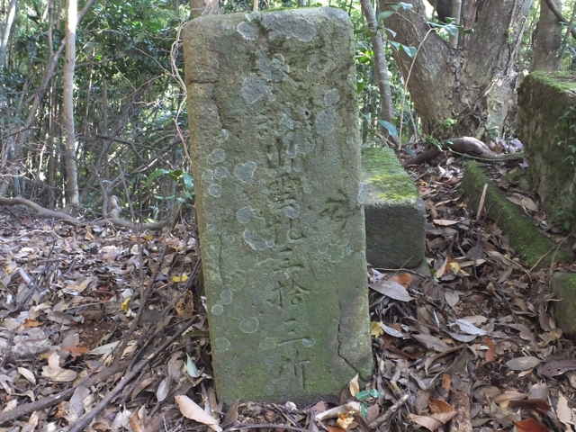 石碑が倒れている。 |