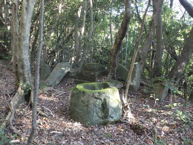 | 今日は、西持田町の小倉地区にある小倉寺跡と東持田町の大平山の中腹にある大平滝を訪ねることにしました。 小倉寺は明治6年(1873)に廃寺となり、本尊の観音菩薩像は松江市石橋町の千手院に移された(「ふるさと持田の彩」)。島根札を歩いた時に、小倉寺跡の様子がわからず、確認していなかったが、持田公民館の資料によって、石碑などが残っているようなので、寺跡を訪ねることにしました。 小倉地区からのルートがはっきりしないので、ソフトビジネスパークから山へ入ることにしました。ビジネスパークのピークから北へ向かうと中電の駐車場があり、この奥から小倉地区の谷への径があるはずです。山へ入ると踏み跡が上がっており、すぐ峠となりました。峠の右には数体の地蔵があり、反対側には大きな石積みがありましたが、何なのかはわかりませんでした。この峠の周りには広い場所はなく、寺跡とは思えず、峠から西へ向かって径があるので、向かってみました。峠から3分ほど竹林の中を歩くと、右へ上がる径が分かれていました。曲がり角には小さな木札が置いてあり、小倉寺跡と書かれていました。少し上がると、広場があり、手水鉢が残っており、ここが寺跡だとわかりました。公民館の資料では石碑が立っている写真がありましたが、倒れてしまったようです。 寺跡から引き返し、分岐から西へ進んでみました。5分ほど歩くと、林内を抜け出し、稜線を上がる真山登山道に出会いました。 お地蔵さんが立っていた峠まで引き返し、北へ向かって峠を下がってみました。竹林の中の歩きやすい径を5分ほど下ると、小倉地区の民家の脇に下りてきました。 |