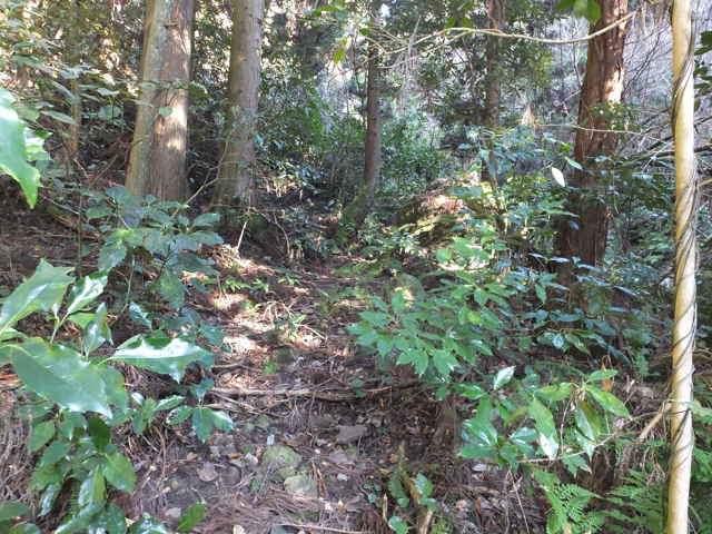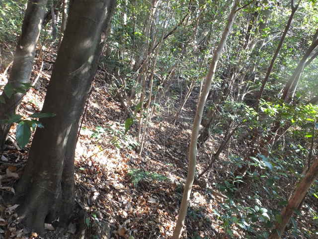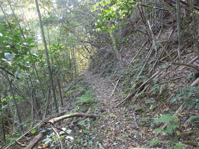| 東持田町 斜面の途中にトラバースする細い径がある。 |