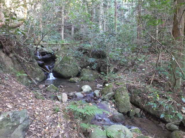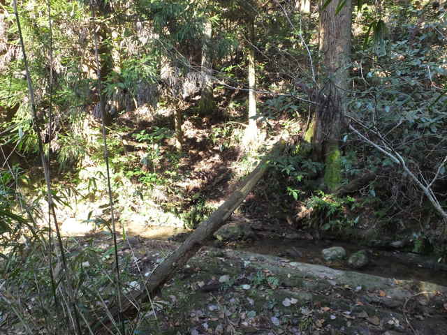 川を渡った所から右へ谷を上がる。 |