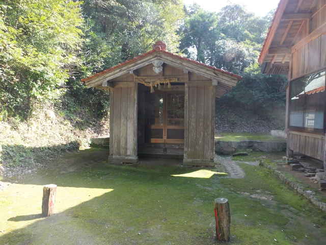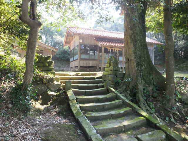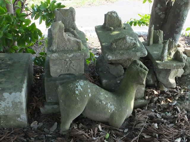 | 春日神社 本殿 | 壊れた鹿の石像が残されている。 | 手角町の集落へ |