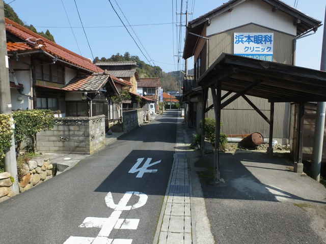 | 集落手前から道路北側斜面に上がる。 | 墓の脇を通る。 | 元保育所入り口へ下りてきた。 |