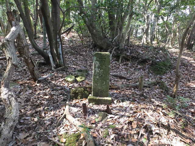 | 12:14 尾根の鞍部の右上に石塔がある。 | 「三界萬霊塔」とある。 | 12:15 鞍部から間違って北へ上がってしまう。 |